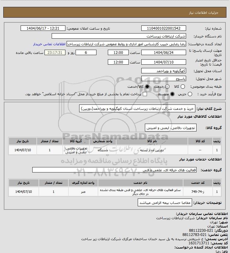 شرح کلی نیاز: خریذ و خدمت شرکت ارتباطات زیرساخت استان کهگیلویه و بویراحمد(دوربین)