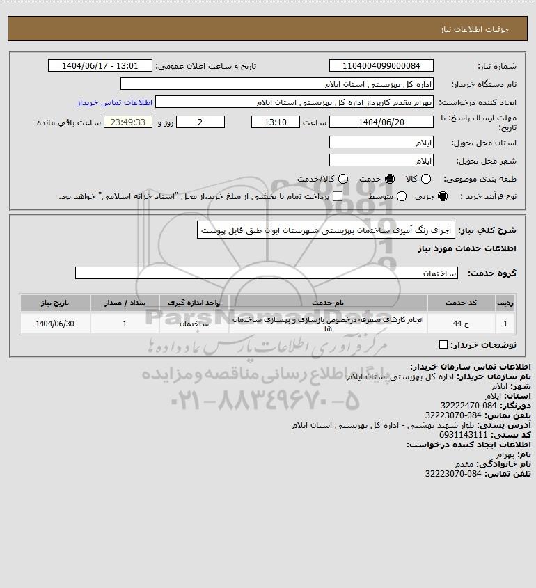 شرح کلی نیاز: اجرای رنگ آمیزی ساختمان بهزیستی شهرستان ایوان طبق فایل پیوست
