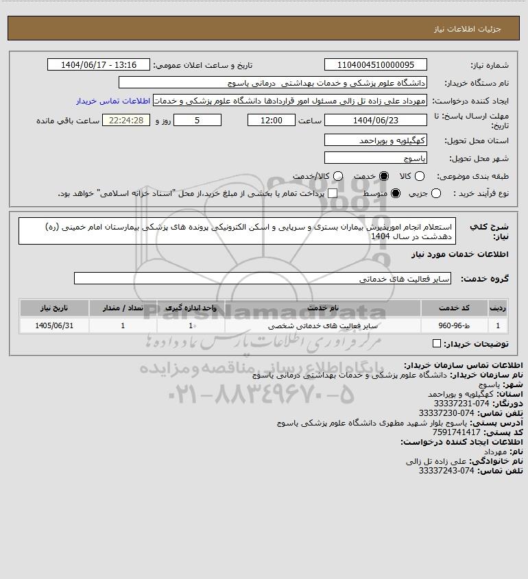 نام دستگاه خریدار:دانشگاه علوم پزشکی و خدمات بهداشتی درمانی یاسوج