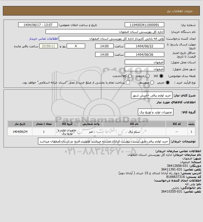 شرح کلی نیاز: خرید لوازم برقی خمینی شهر