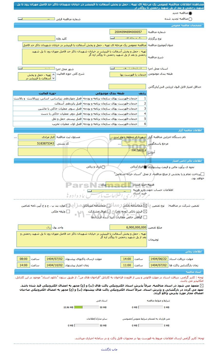 | شماره مناقصه | 2004094694000057 | |||||||||||||||||||||||