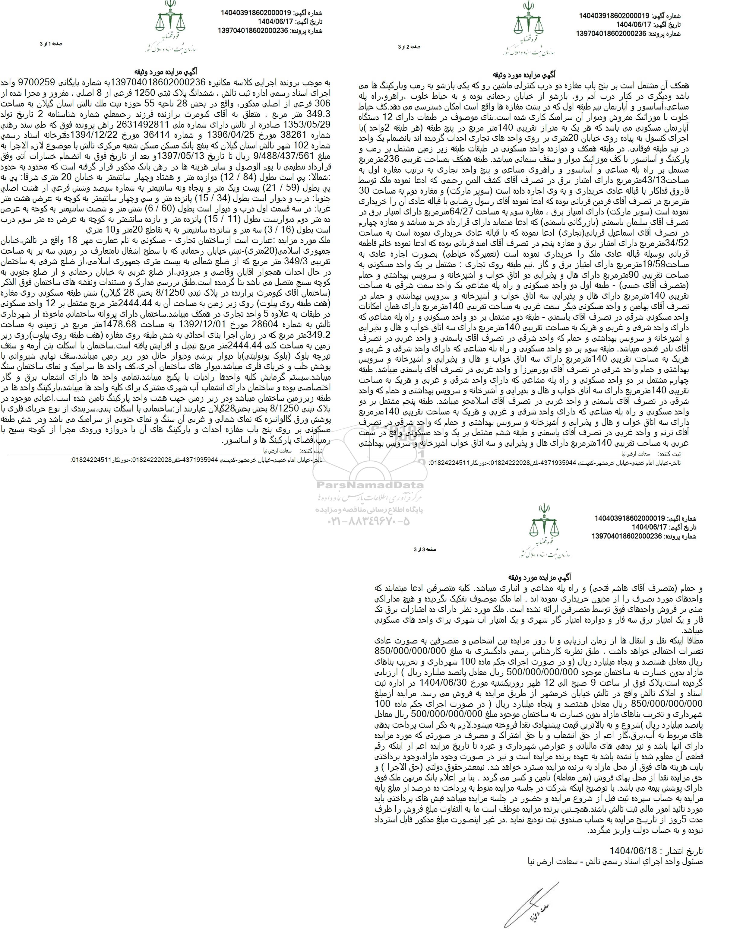 مزایده ششدانگ پلاک ثبتی 1250 فرعی از 8 اصلی