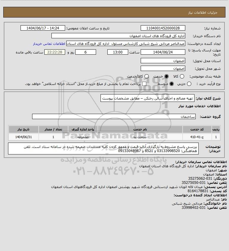 نام دستگاه خریدار:اداره کل فرودگاه های استان اصفهان