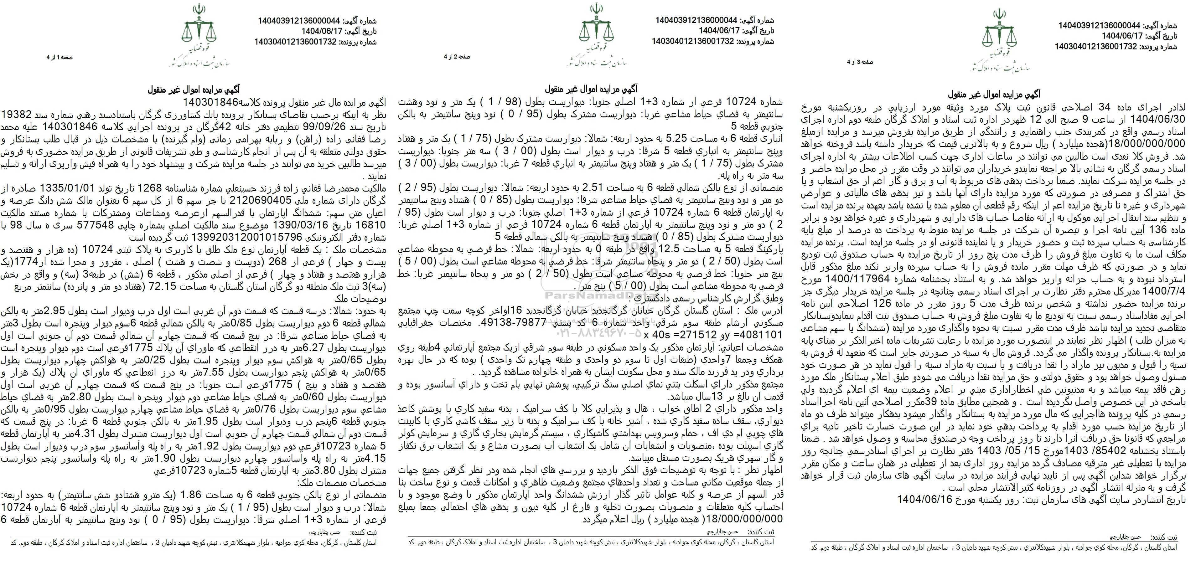 مزایده فروش یک قطعه آپارتمان به مساحت 72.15 مترمربع پلاک ثبتی 10724 فرعی از 268 اصلی
