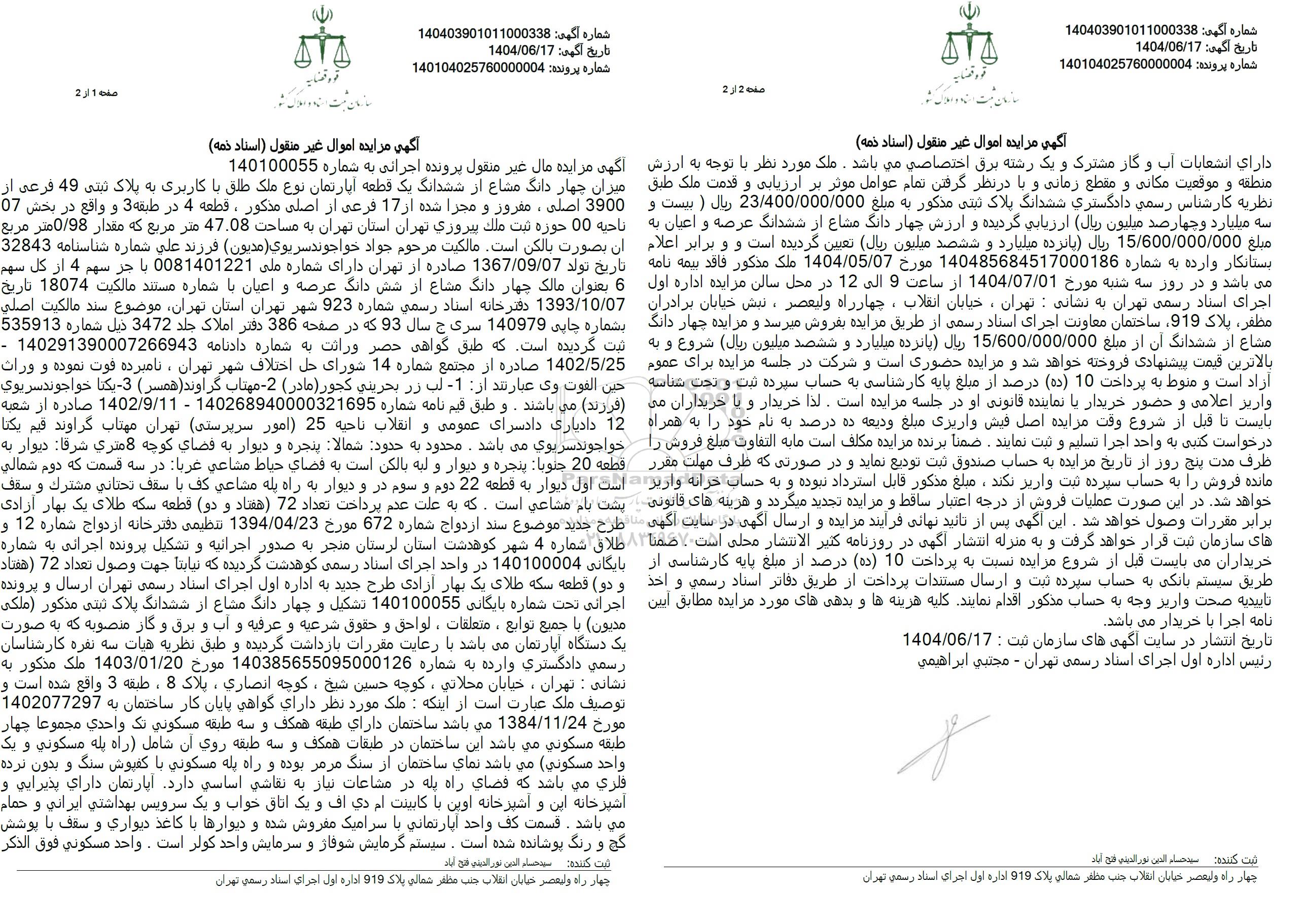 آگهی مزایده مورد وثیقه