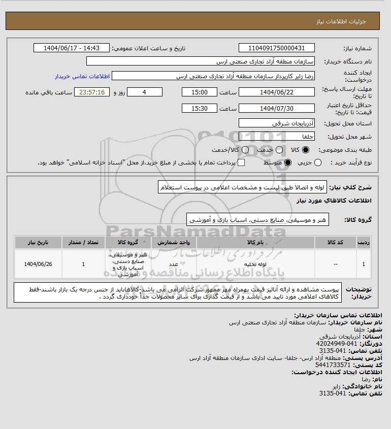 نام دستگاه خریدار:سازمان منطقه آزاد تجاری صنعتی ارس