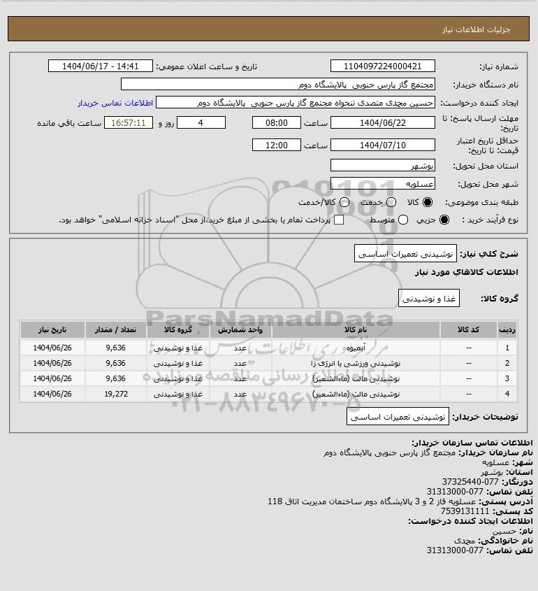 نام سازمان خریدار: مجتمع گاز پارس جنوبی پالایشگاه دوم