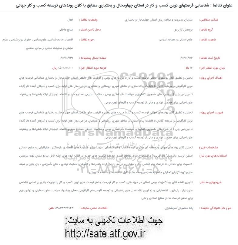 عنوان تقاضا : شناسایی فرصتهای نوین کسب و کار در استان چهار محال و بختیاری مطابق با کلان روندهای توسعه کسب و کار جهانی