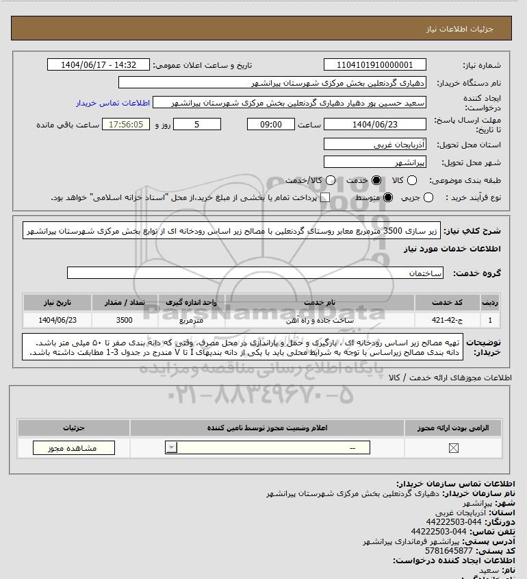 استعلام زیر سازی 3500 مترمربع معابر روستای گردنعلین با مصالح زیر اساس رودخانه ای از توابع بخش مرکزی شهرستان پیرانشهر, استعلام زیر سازی 3500 مترمربع معابر روستای گردنعلین با مصالح زیر اساس رودخانه ای از توابع بخش مرکزی شهرستان پیرانشهر