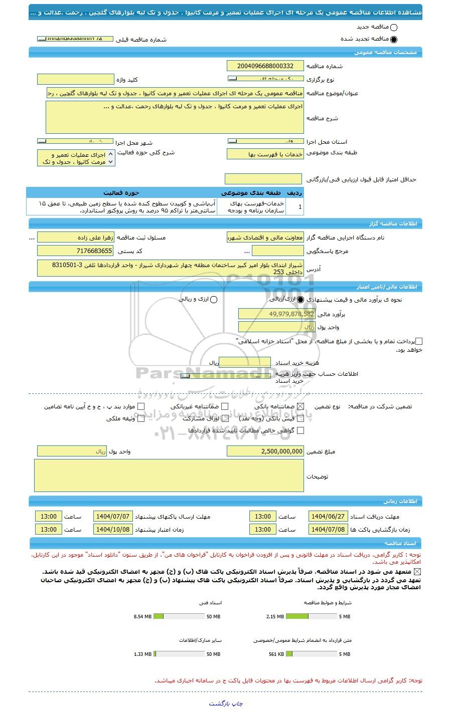 | شماره مناقصه | 2004096688000332 | ||||||||