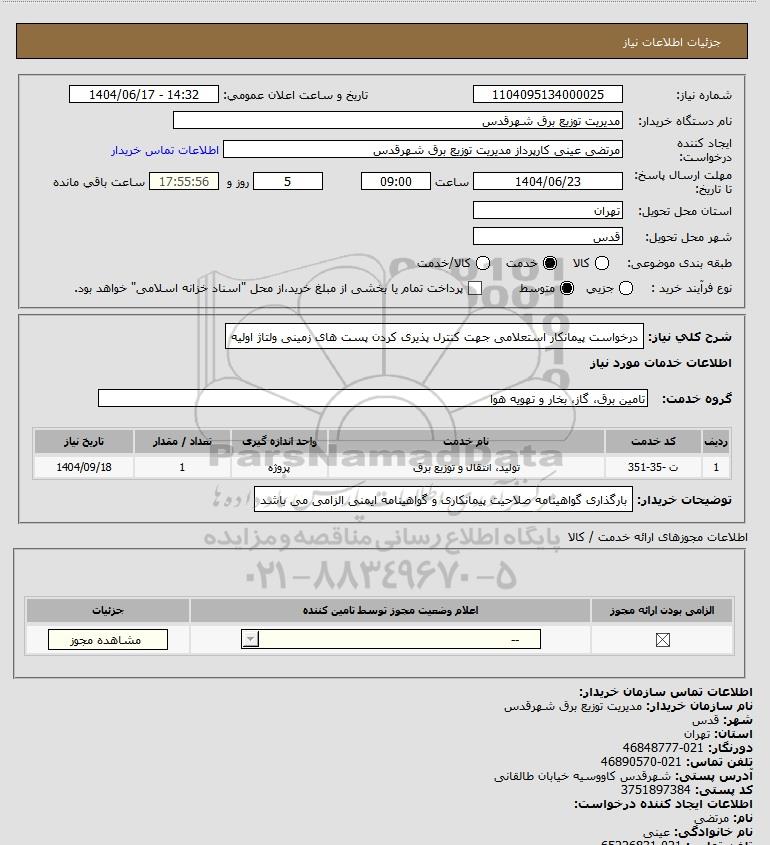 استعلام درخواست پیمانکار استعلامی جهت کنترل پذیری کردن پست های زمینی ولتاژ اولیه, استعلام درخواست پیمانکار استعلامی جهت کنترل پذیری کردن پست های زمینی ولتاژ اولیه