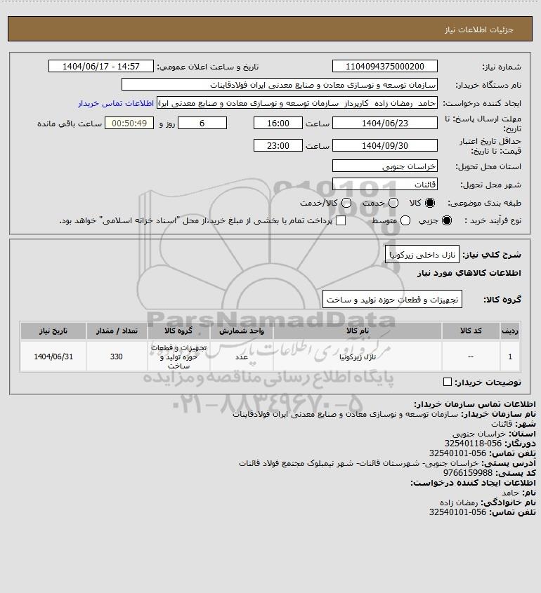 نام دستگاه خریدار:سازمان توسعه و نوسازی معادن و صنایع معدنی ایران فولادقاینات