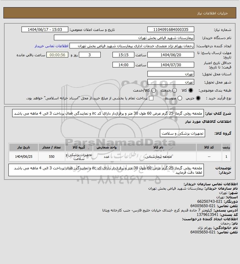 نام دستگاه خریدار:بیمارستان شهید فیاض بخش تهران