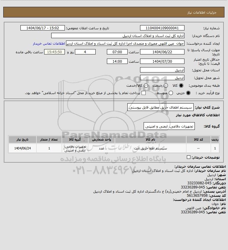 1 -- سیستم اطفا حریق ثابت عدد تجهیزات دفاعی، ایمنی و امنیتی 1 1404/06/24