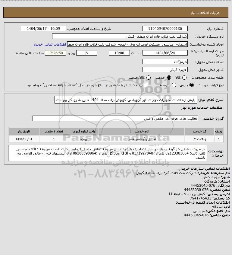نام دستگاه خریدار:شرکت نفت فلات قاره ایران منطقه کیش