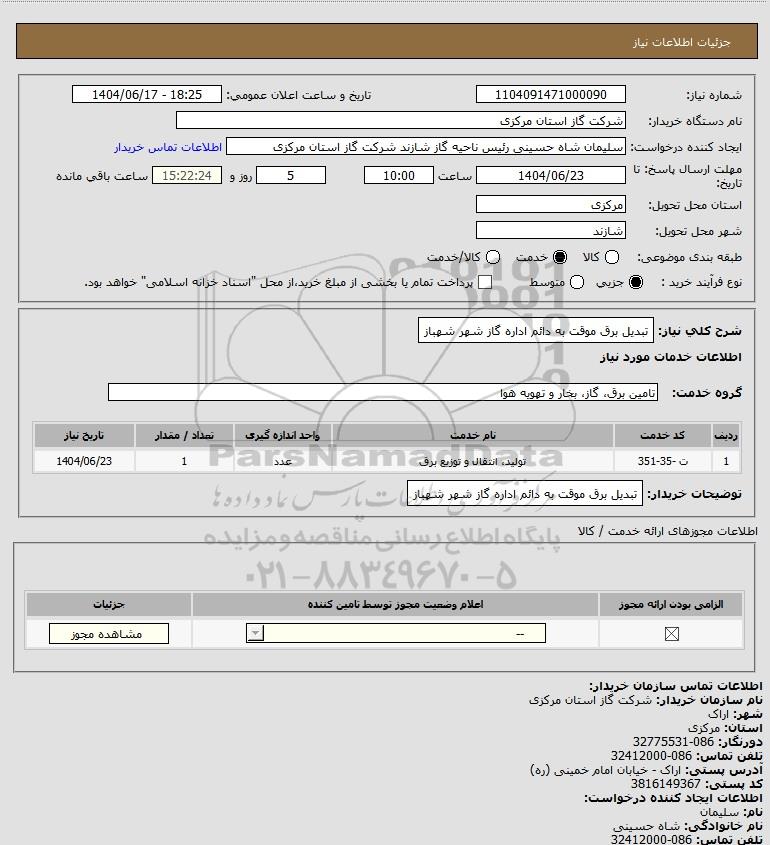 استعلام تبدیل برق موقت به دائم اداره گاز شهر شهباز, استعلام تبدیل برق موقت به دائم اداره گاز شهر شهباز