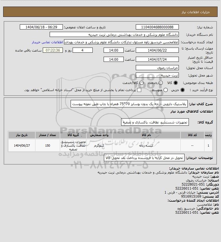 نام دستگاه خریدار:دانشگاه علوم پزشکی و خدمات بهداشتی درمانی تربت حیدریه