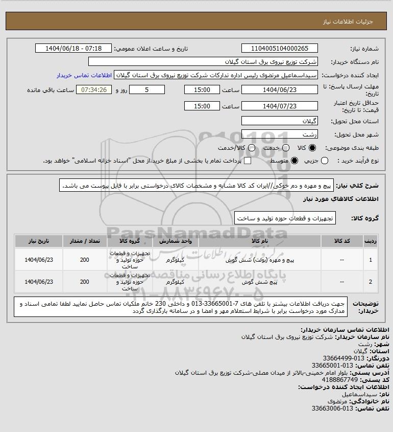 نام سازمان خریدار: شرکت توزیع نیروی برق استان گیلان
