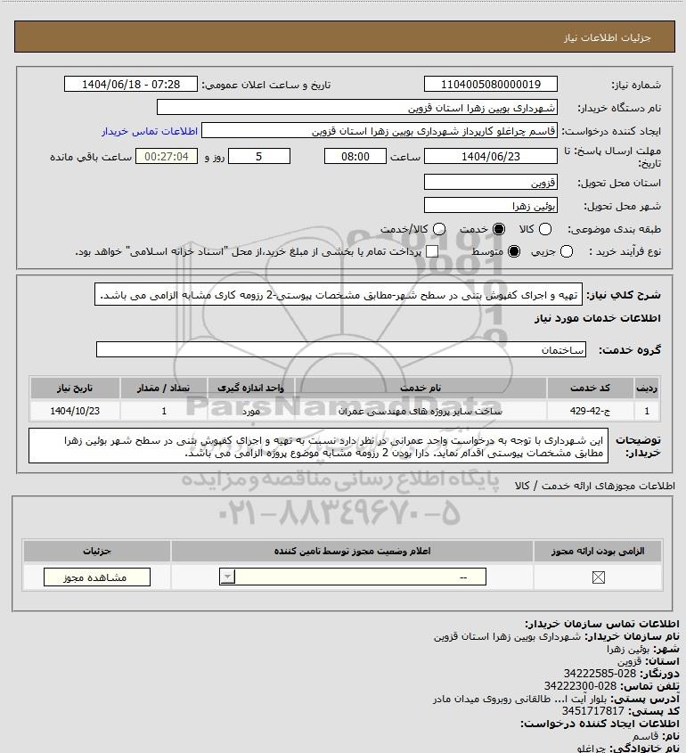 نام دستگاه خریدار:شهرداری بویین زهرا استان قزوین