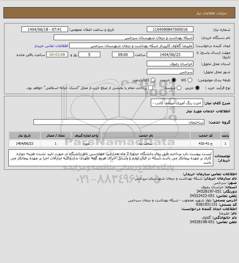 شرح کلی نیاز: اجرت رنگ آمیزی -سقف کاذب -