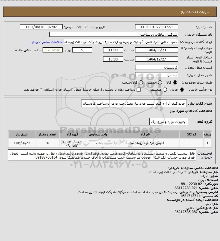 شرح کلی نیاز: خرید کیف ابزار و کیف تست مورد نیاز بخش فیبر نوری زیرساخت کردستان