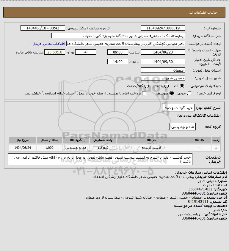 نام دستگاه خریدار:بیمارستان 9 دی منظریه خمینی شهر دانشگاه علوم پزشکی اصفهان