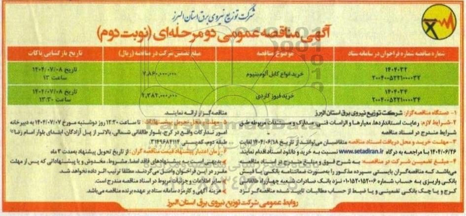 1- دستگاه مناقصه گذار: شرکت توزیع نیروی برق استان البرز