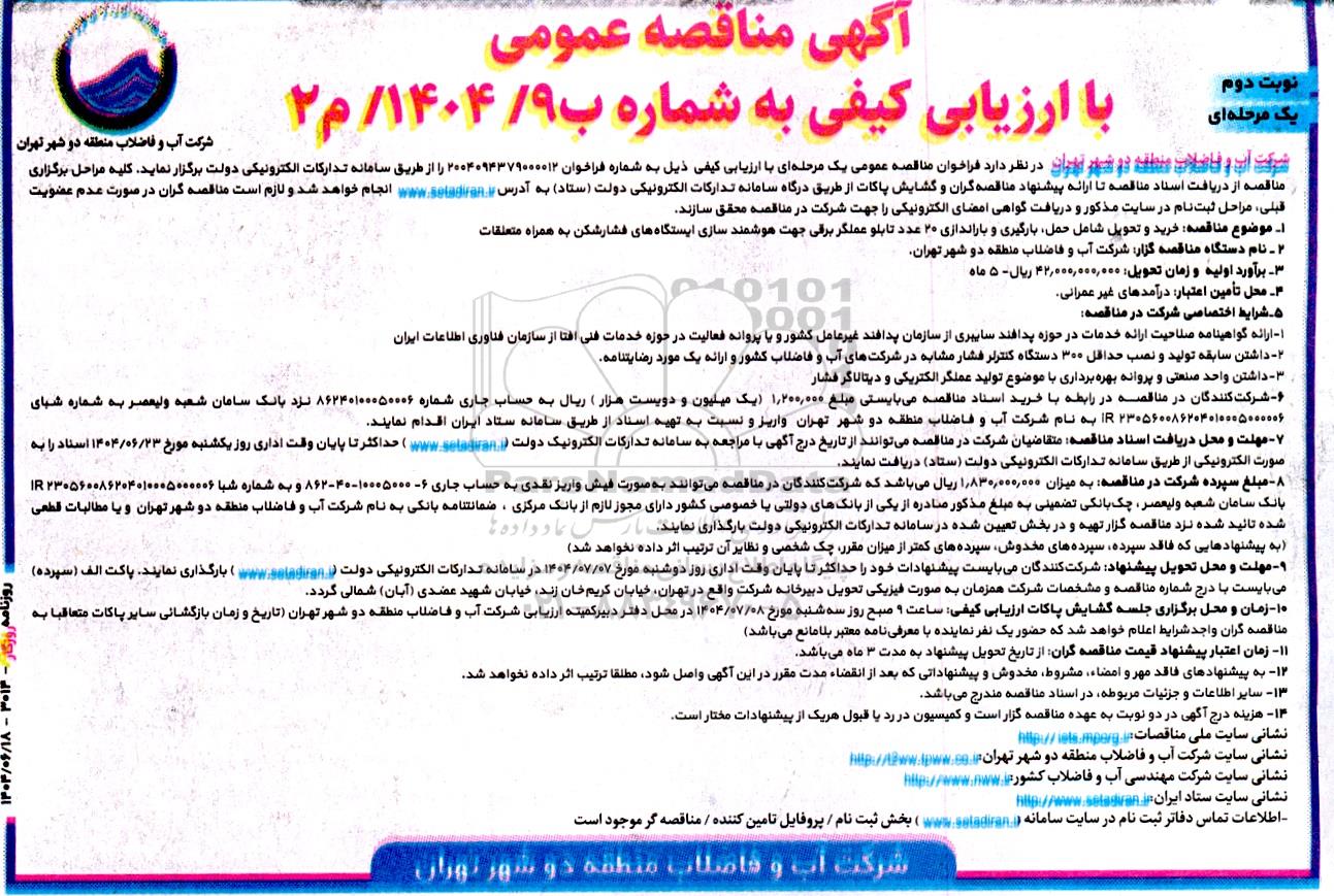 آگهی مناقصه عمومی با ارزیابی کیفی به شماره ب9. 1404 م2