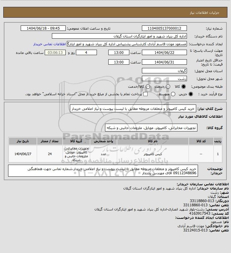 نام دستگاه خریدار:اداره کل بنیاد شهید و امور ایثارگران استان گیلان