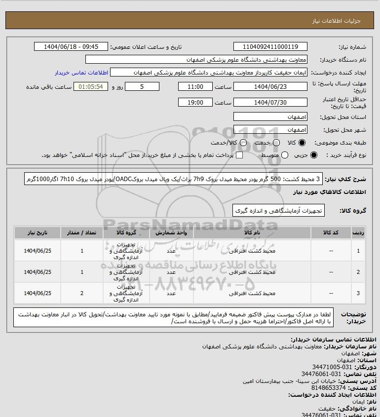 | 2 | -- | محیط کشت افتراقی | عدد | تجهیزات آزمایشگاهی و اندازه گیری | 1 | 1404/06/25 |