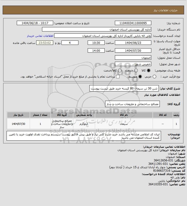 شرح کلی نیاز: شن 30 تن سیمان 80 کیسه خرید طبق لیست پیوست