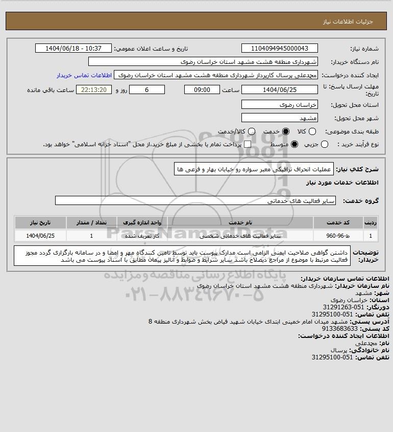 نام دستگاه خریدار:شهرداری منطقه هشت مشهد استان خراسان رضوی