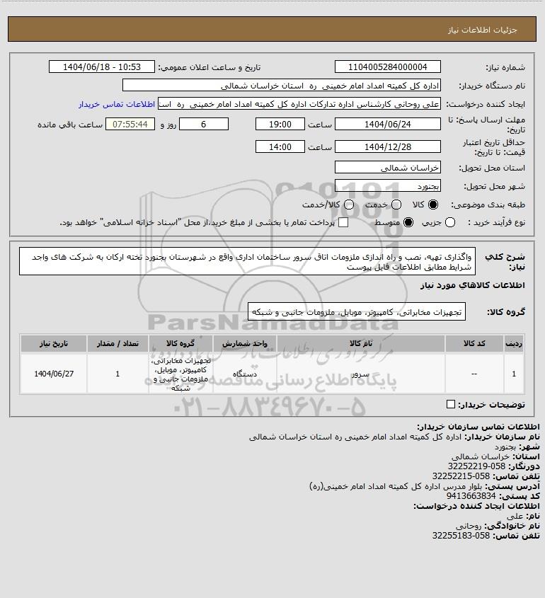 1 -- سرور دستگاه تجهیزات مخابراتی، کامپیوتر، موبایل، ملزومات جانبی و شبکه 1 1404/06/27