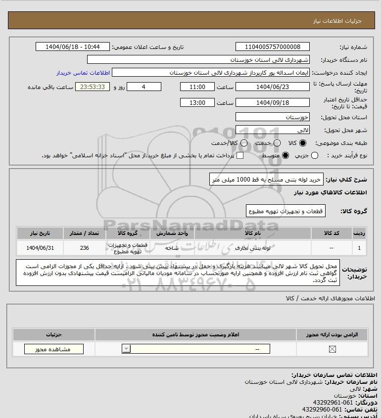نام دستگاه خریدار:شهرداری لالی استان خوزستان