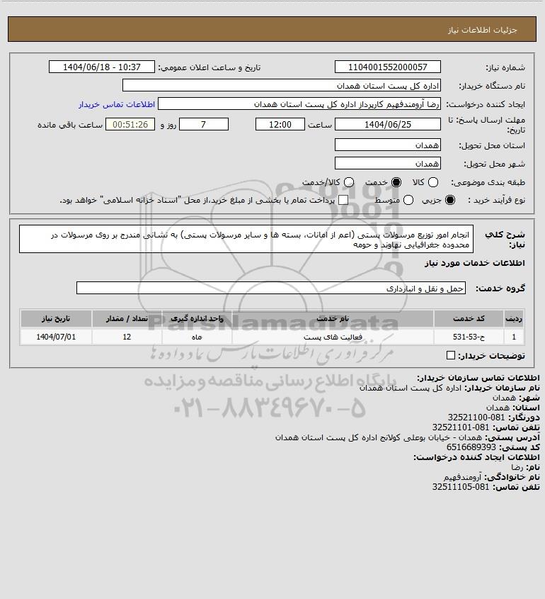 نام دستگاه خریدار:اداره کل پست استان همدان