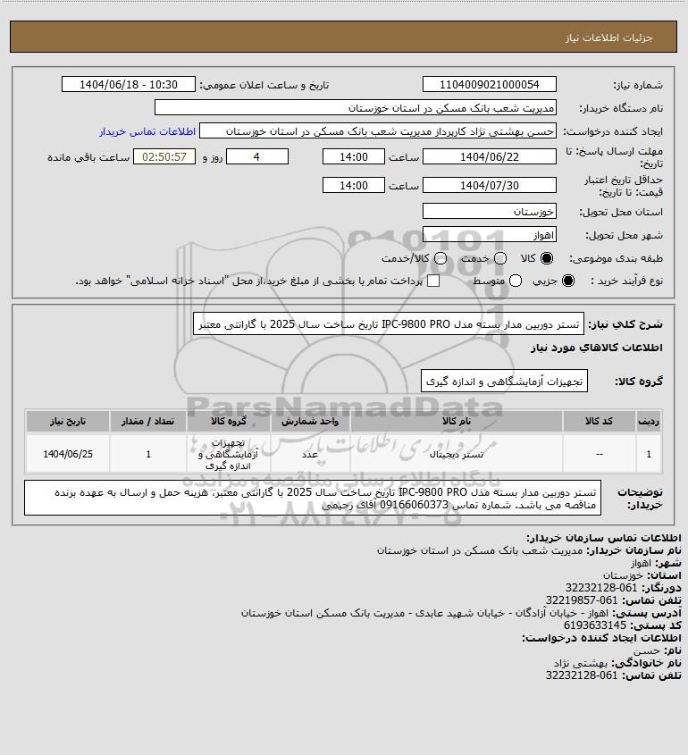 نام دستگاه خریدار:مدیریت شعب بانک مسکن در استان خوزستان