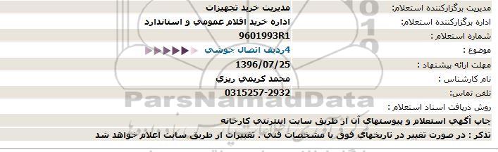 اداره برگزارکننده استعلام: اداره خرید اقلام عمومی و استاندارد