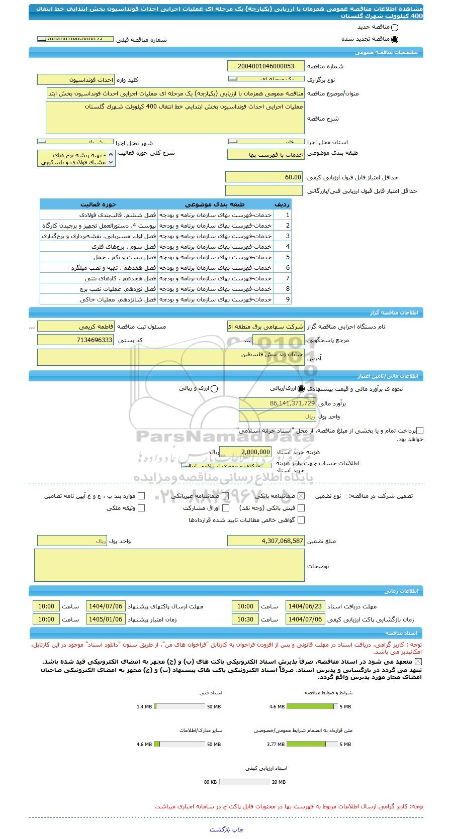 | مبلغ تضمین | 4,307,068,587 | واحد پول | ریال |