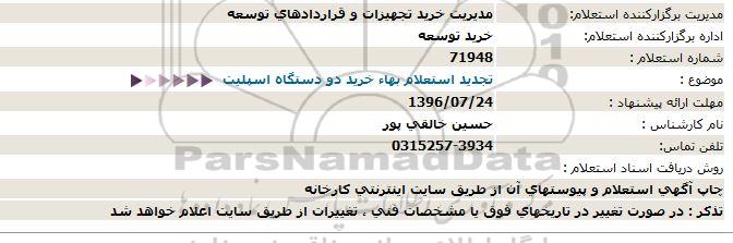 تجدید استعلام خرید دو دستگاه اسپیلت, مناقصه, تجدید استعلام خرید دو دستگاه اسپیلت
