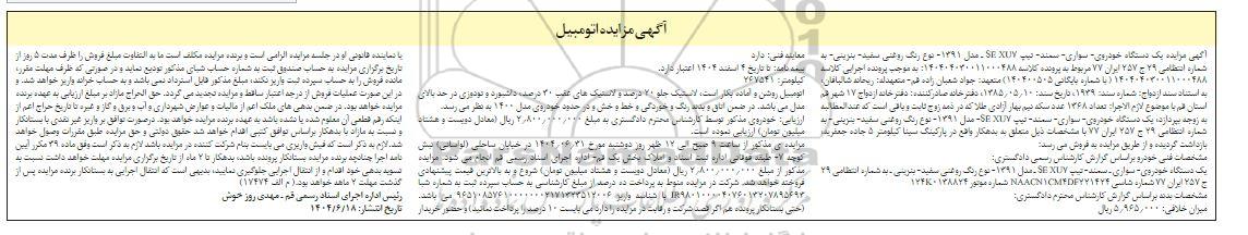 مزایده یک دستگاه خودروی سواری سمند رنگ روغنی , مزایده یک دستگاه خودروی سواری سمند رنگ روغنی