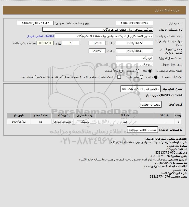 نام دستگاه خریدار:شرکت سهامی برق منطقه ای هرمزگان