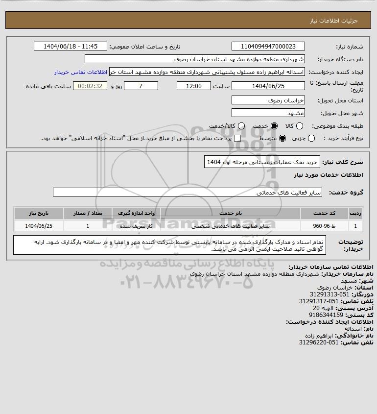 نام دستگاه خریدار:شهرداری منطقه دوازده مشهد استان خراسان رضوی
