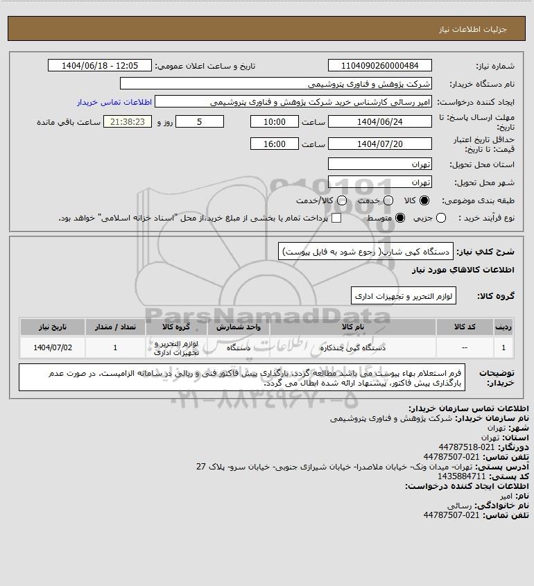 نام دستگاه خریدار:شرکت پژوهش و فناوری پتروشیمی