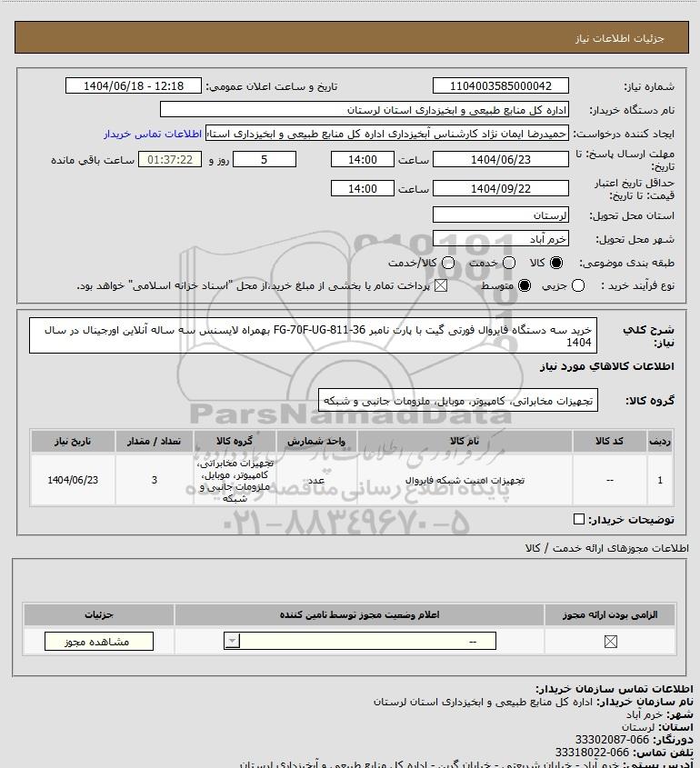 نام دستگاه خریدار:اداره کل منابع طبیعی و ابخیزداری استان لرستان