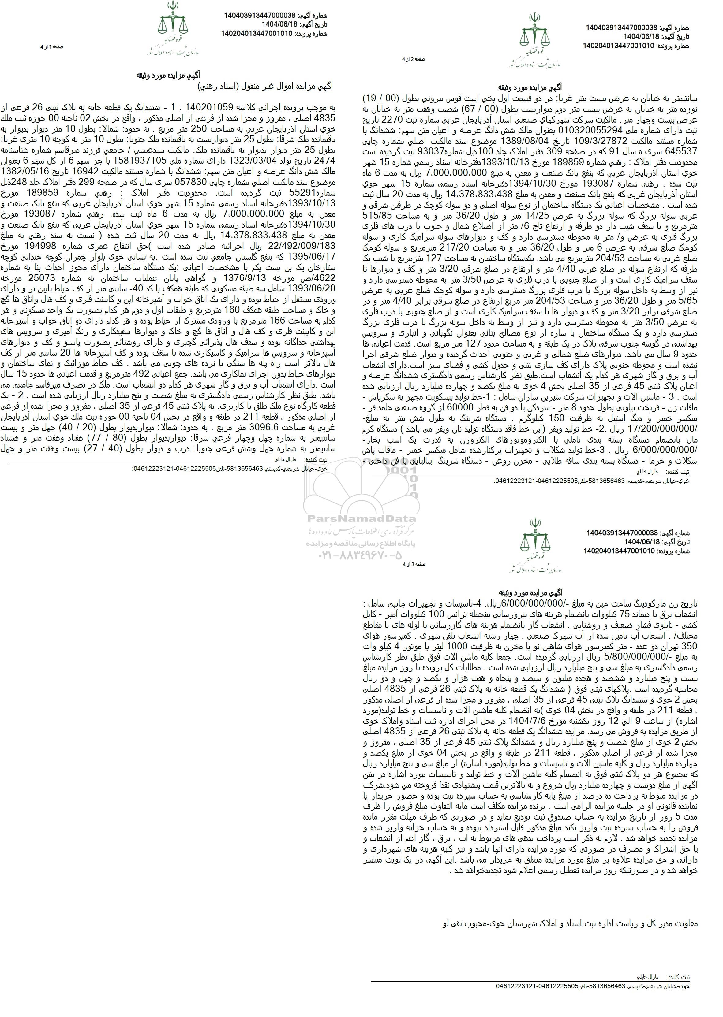 شماره آگهی: 140403913447000038