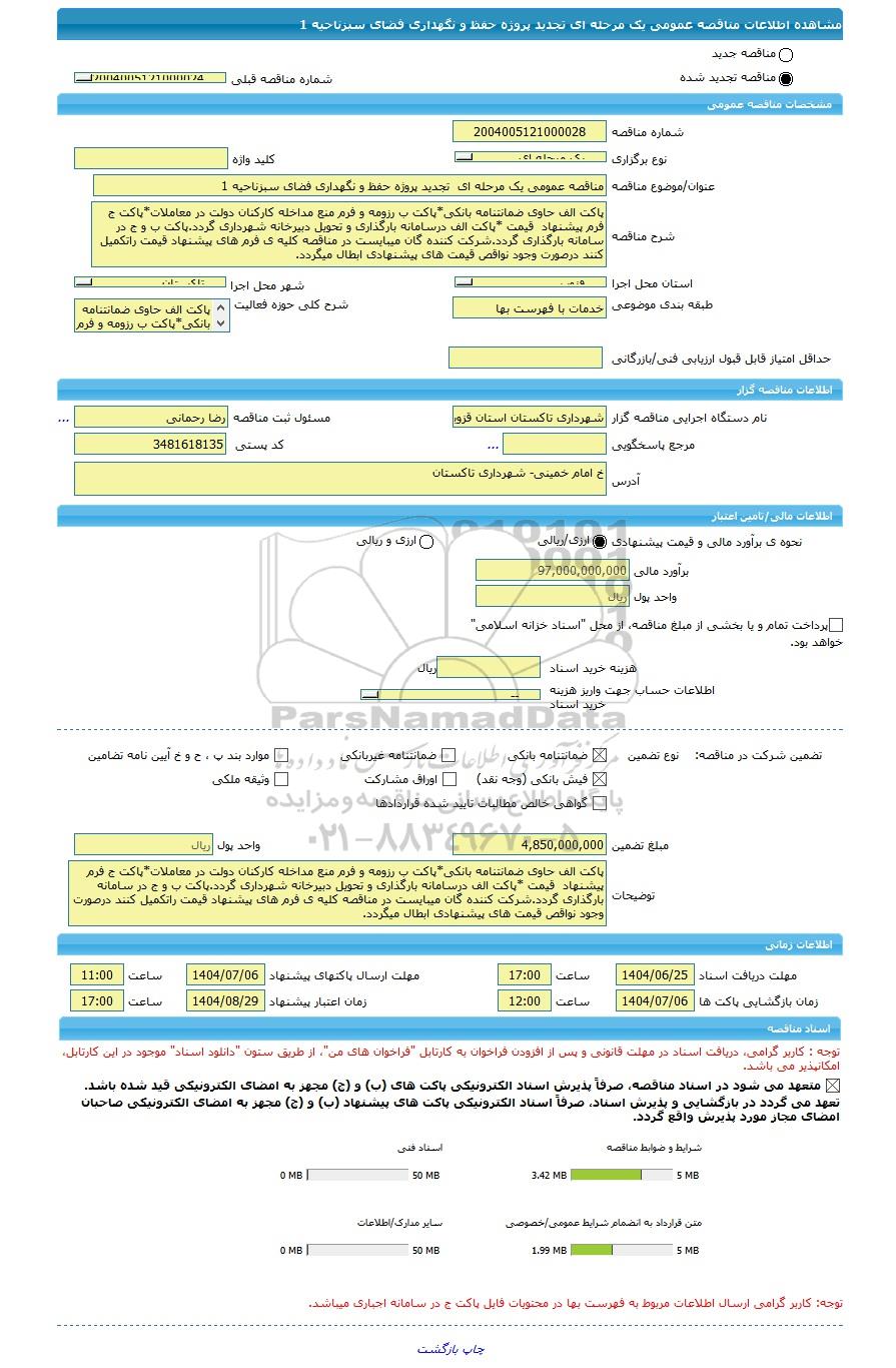 | مبلغ تضمین | 4,850,000,000 | واحد پول | ریال |