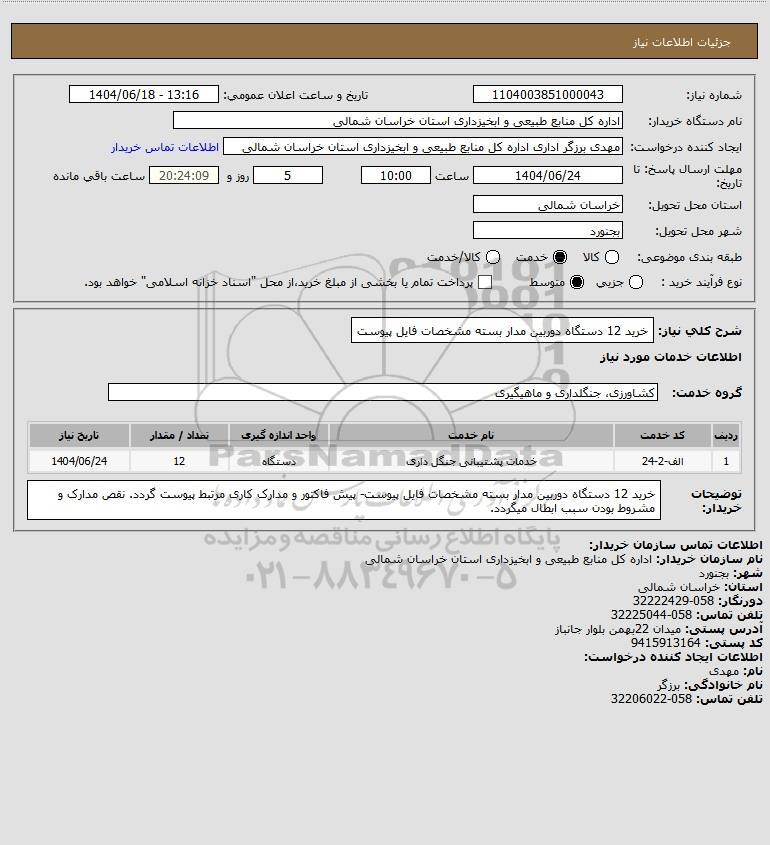 نام دستگاه خریدار:اداره کل منابع طبیعی و ابخیزداری استان خراسان شمالی