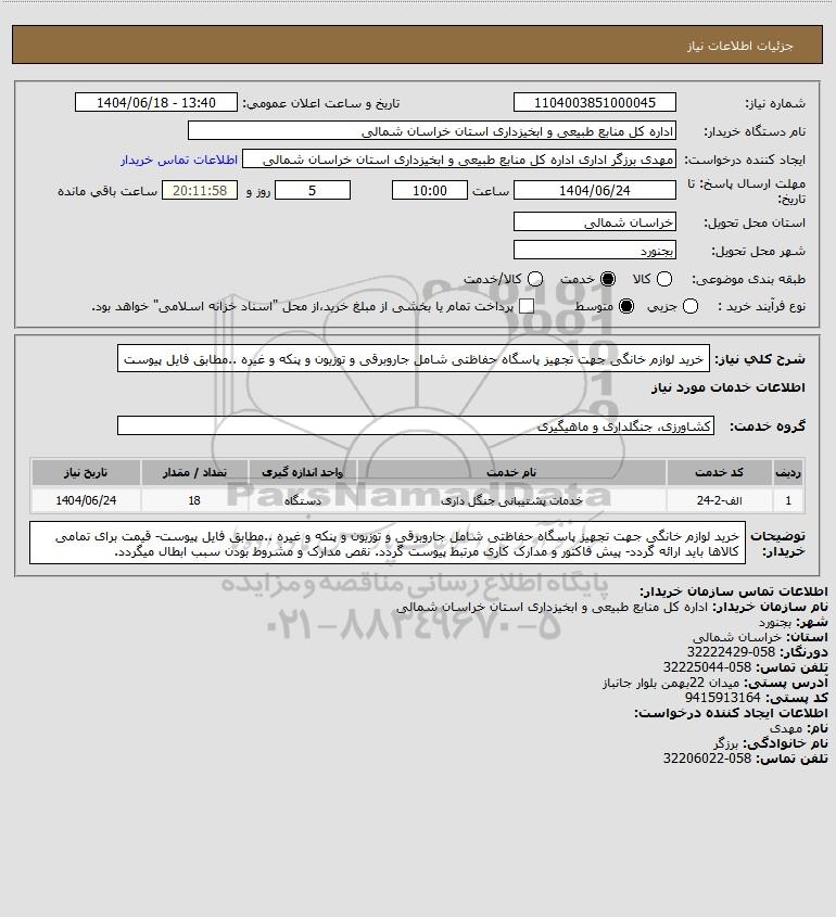نام دستگاه خریدار:اداره کل منابع طبیعی و ابخیزداری استان خراسان شمالی