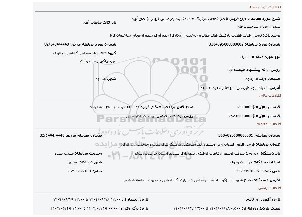10 حراج حضوری فروش اقلام ضایعاتی مانند ...- نوبت دوم 9807035 1404/08/14 new not special not payed فارس