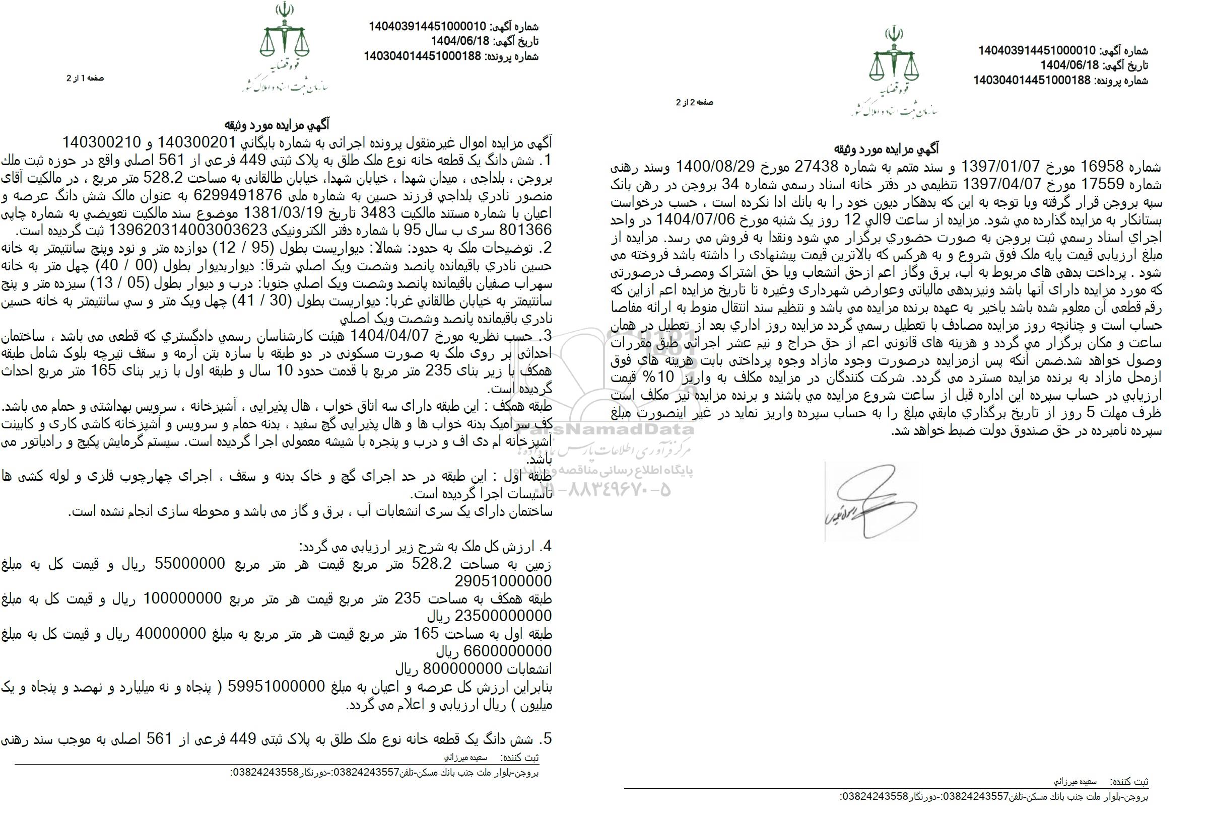مزایده ملک به پلاک ثبتی 449 فرعی از 561 اصلی , مزایده ملک به پلاک ثبتی 449 فرعی از 561 اصلی